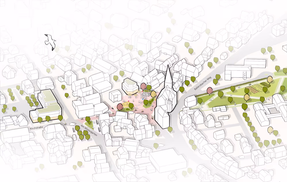 Gemeinsam mit den Kolleg*innen von wbp Landschaftsarchitekten haben wir in den letzten Monaten im Rahmen des zweistufigen Werkstattverfahrens an unserem Konzept zur Umgestaltung des Stadteingangs in Leverkusen Wiesdorf gearbeitet. Unser Konzept zielt darauf ab, das identitätsstiftende Ensemble aus Herz-Jesu-Kirche, Pfarrheim und Pavillons unter dem Aspekt der Ressourceneffizienz zu erhalten, zeitgemäß weiterzuentwickeln und durch neue Nutzungsbausteine zu ergänzen. So entsteht ein durchgrünter Stadtraum, der mehr Raum für Klimaresilienz in der Stadt schafft und gleichzeitig behutsam mit dem baulichen Ensemble umgeht! Mehr Infos hier!