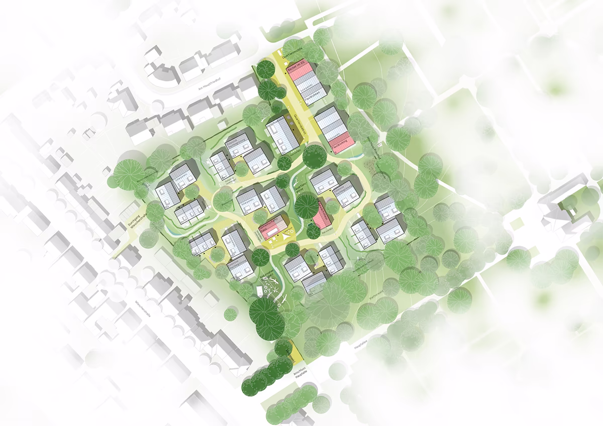 Wir freuen uns riesig über den 1. Preis beim nichtoffenen Realisierungswettbewerb Klimasiedlung Wiescherstraße in Herne! Auf der Fläche der ehemaligen Stadtgärtnerei soll ein neues zukunftsweisendes Wohngebiet entwickelt werden. Das von uns vorgeschlagene städtebauliche Konzept schafft auf 2,3 ha familienfreundliche, freiraumbezogene Wohncluster, welche Identität, Gemeinschaft und Kommunikation fördern. Die Einbindung des bestehenden Grüns findet in unserem Konzept besondere Berücksichtigung.