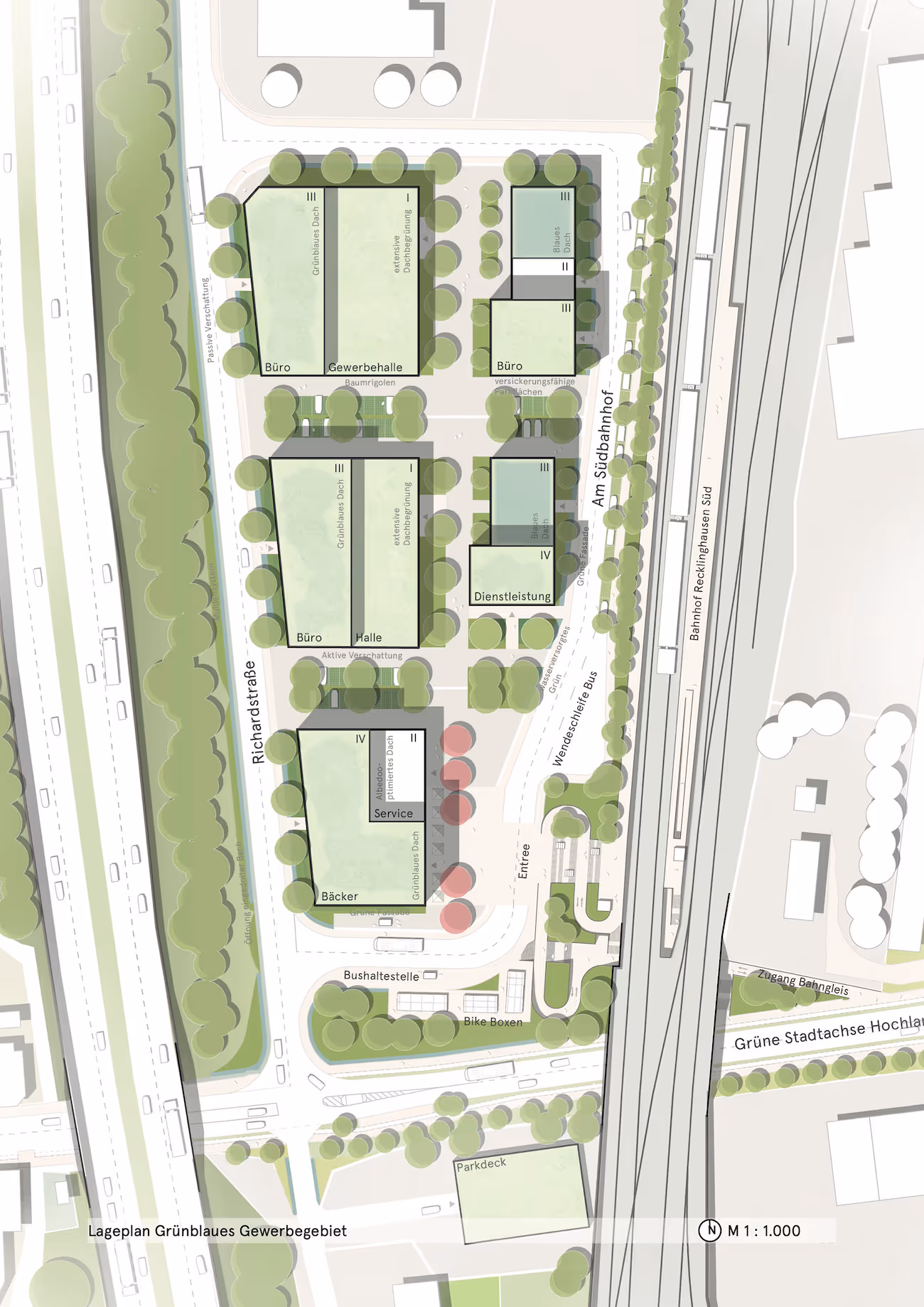 Der städtebauliche Rahmenplan für das Bahnhofsumfeld in Recklinghausen-Süd sowie den umgebenden Stadtteil Grullbad zeigt als informelles Planungsinstrument Lösungsansätze für eine zukunftsorientierte Transformation auf. Das Plangebiet liegt in einem dynamischen Umfeld, welches seit jeher industriell geprägt ist und im Zuge neuer Entwicklungen und Trends neue Ideen braucht. Das vorliegende Planwerk möchte diesen Wandel gestalten und geeignete Maßnahmen aufzeigen, die den Stadtteil zu einem noch lebenswerteren und attraktiven Quartier machen.