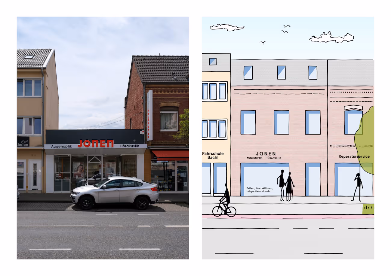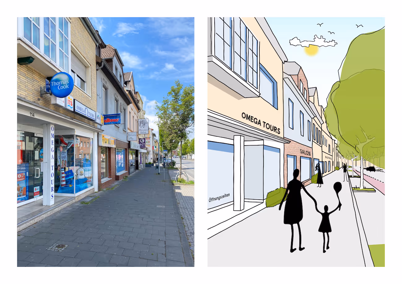 Wie kann die Köln-Aachener-Straße in Zukunft zu einem Ort werden, der die eigene Identität wieder mehr erlebbar macht? Welche Merkmale sind charakteristisch für den historisch bedeutenden Straßenzug und wie kann diese Identität nicht nur bewahrt werden, sondern auch in Zukunft wieder klarer erkennbar sein?