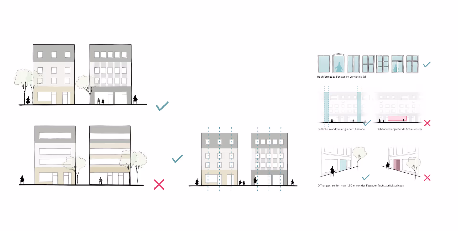 Das Gestaltungshandbuch für die Köln-Aachener-Straße bildet die Grundlage für die gestalterische Entwicklung der Baustruktur in den kommenden Jahren. Die konzeptionellen Aspekte sind als Leitlinien zu verstehen, die eine geordnete Gestaltung der Straße sicherstellen und ein einheitliches Stadtbild erzeugen. Auf diese Weise können die ursprünglichen Funktionen erhalten bleiben und eine Stärkung des Stadtteilzentrums wird gewährleistet. Langfristig muss es das Ziel bleiben die gemischte Struktur aus Wohnen und Gewerbe zu erhalten, auch wenn der Einzelhandel nicht mehr die vorherrschende Funktion sein wird.