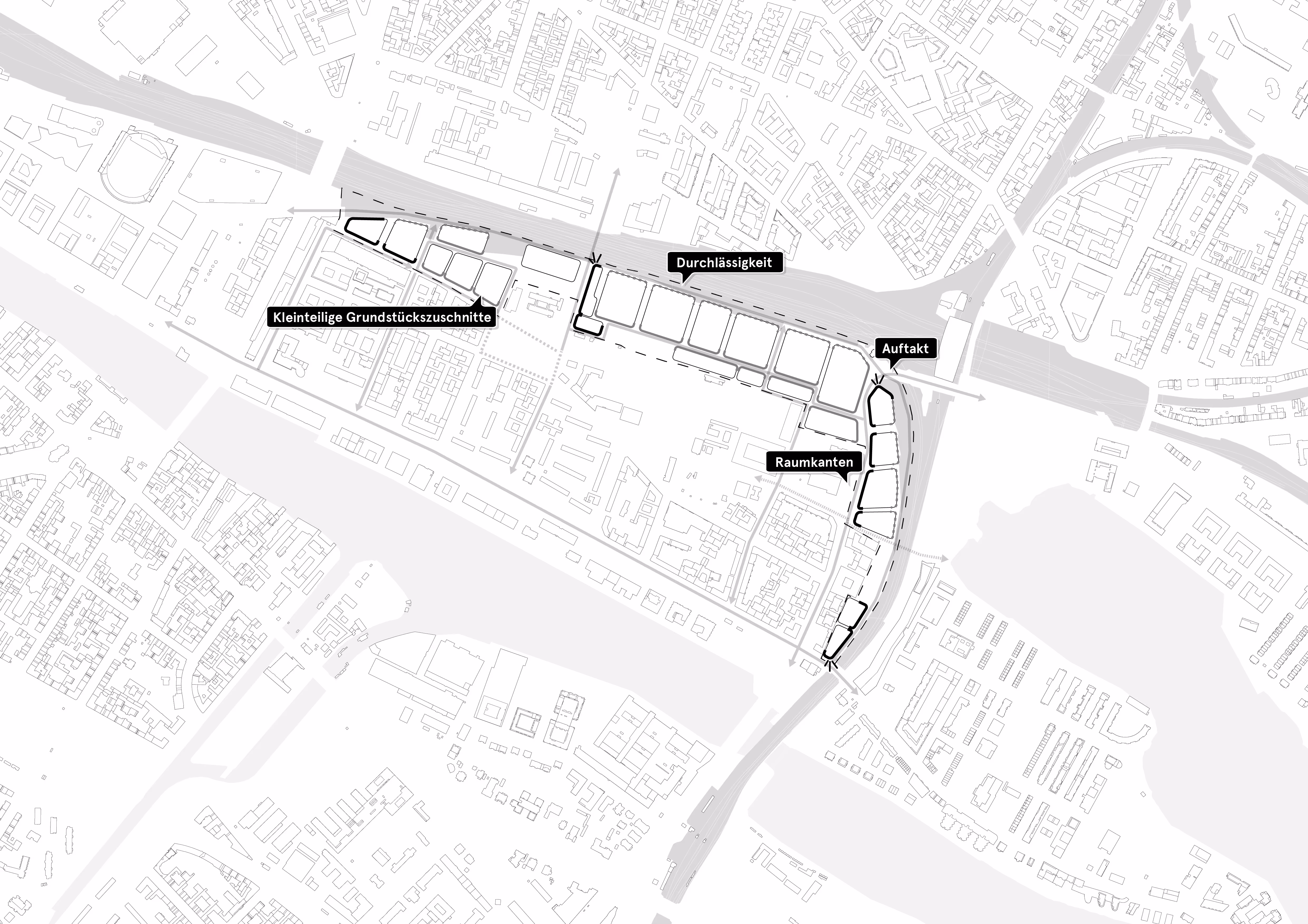 Eine zentrale Leitidee ist die Entwicklung dreier thematischer Nutzungscluster: der „Alleskönner“ im Westen, die „Produktiven & Kulturellen Höfe“ im Zentrum sowie die „Zirkuläre Meistermeile“ im Osten. Diese setzen auf kleinteilige gewerbliche Strukturen, die Synergien zwischen Kultur, Produktion und urbanem Handwerk ermöglichen. Wohnangebote sind gezielt als „gewerbliches Wohnen“ – also an das Arbeiten gekoppelte Wohnformen – oder in gemeinwohlorientierten Trägerstrukturen vorgesehen. Ziel ist es, Gewerbe nicht zu verdrängen, sondern integrativ weiterzuentwickeln.