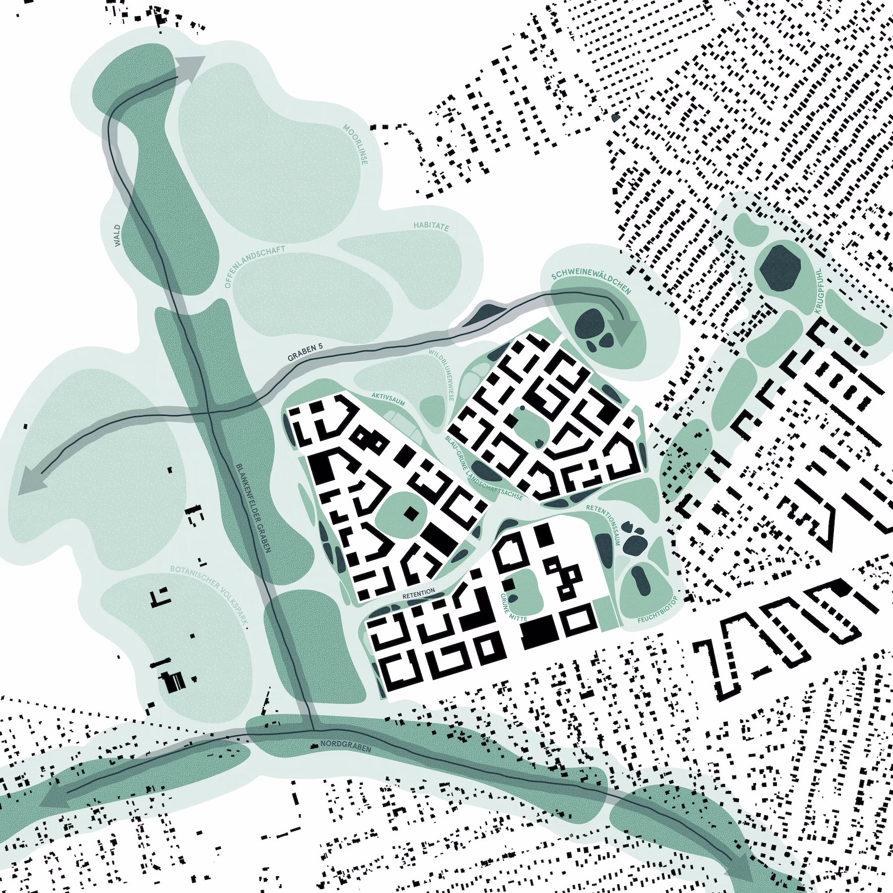 Auf Grund des aktuellen Drucks auf den Wohnungsmarkt soll die, seit den 1990er-Jahren diskutierte, Potenzialfläche für Wohnungsbau in Berlin-Pankow entwickelt werden. Entstehen soll ein lebendiges Quartier, welches ökologische Verantwortung, soziale Vielfalt und städtebauliche Qualität vereint. So soll der Entwurf dem Prinzip der kurzen Wege folgen, vernetze Grünräume integrieren und Infrastrukturkosten minimieren. Gefragt waren mutige Ideen, die auf der Fläche einen qualitätsvollen und identitätsstiftenden Lebensraum schaffen.