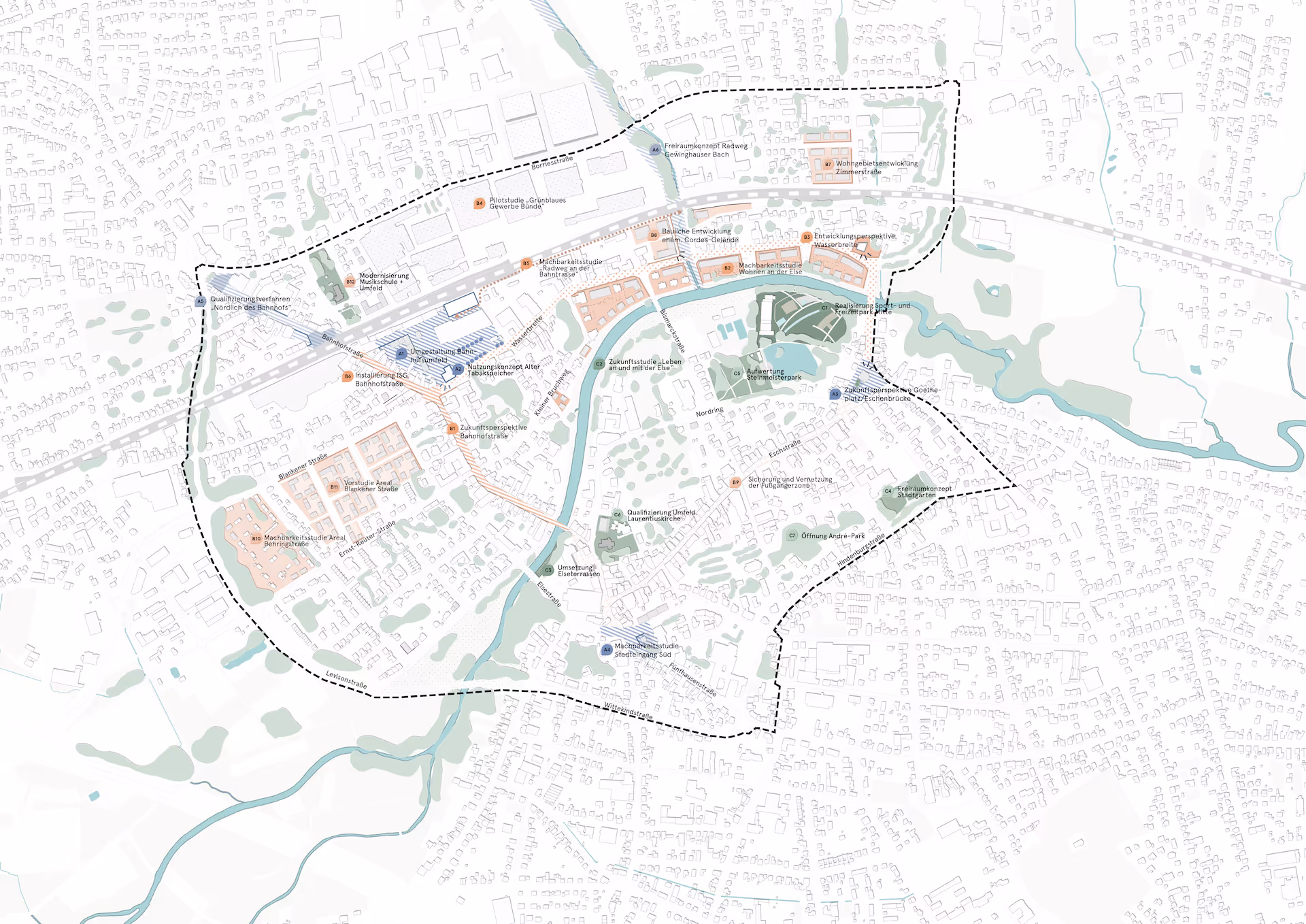 Vor dem Hintergrund eines nachhaltigen Umgangs mit Grund und Boden, der Bewältigung der Klimakrise und der Sicherung der Funktionsfähigkeit städtischer Siedlungsstrukturen rückt das Thema Innenentwicklung zunehmend in den Fokus einer zukunftsorientierten Stadtentwicklung. Dies hat auch die Stadt Bünde erkannt und die Erarbeitung des städtebaulichen Rahmenplans Innenentwicklung in Auftrag gegeben, der die räumlichen Potenziale der Innenstadt identifiziert und anschließend neue Handlungsmöglichkeiten aufzeigt.